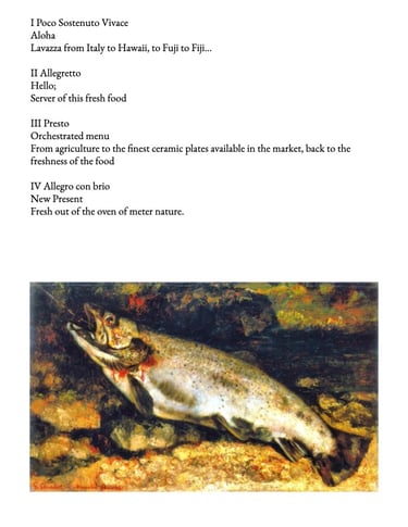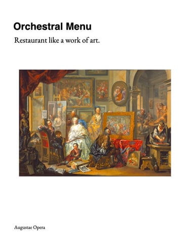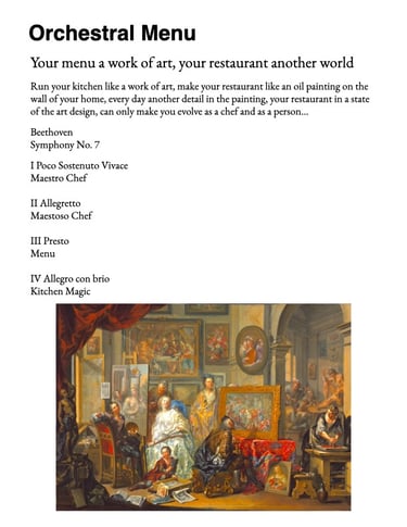 Composed menu for any five star restaurant, a restaurant like a work of art.