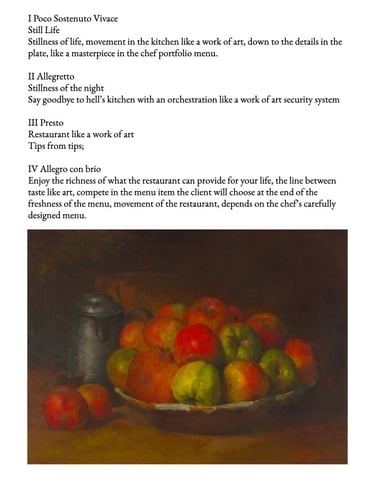 Composed Booklet Composed menu, restaurant working like clockwork, only the waiting list will be awaiting to enjoy the chef's carefully crafted food, like a work of art.